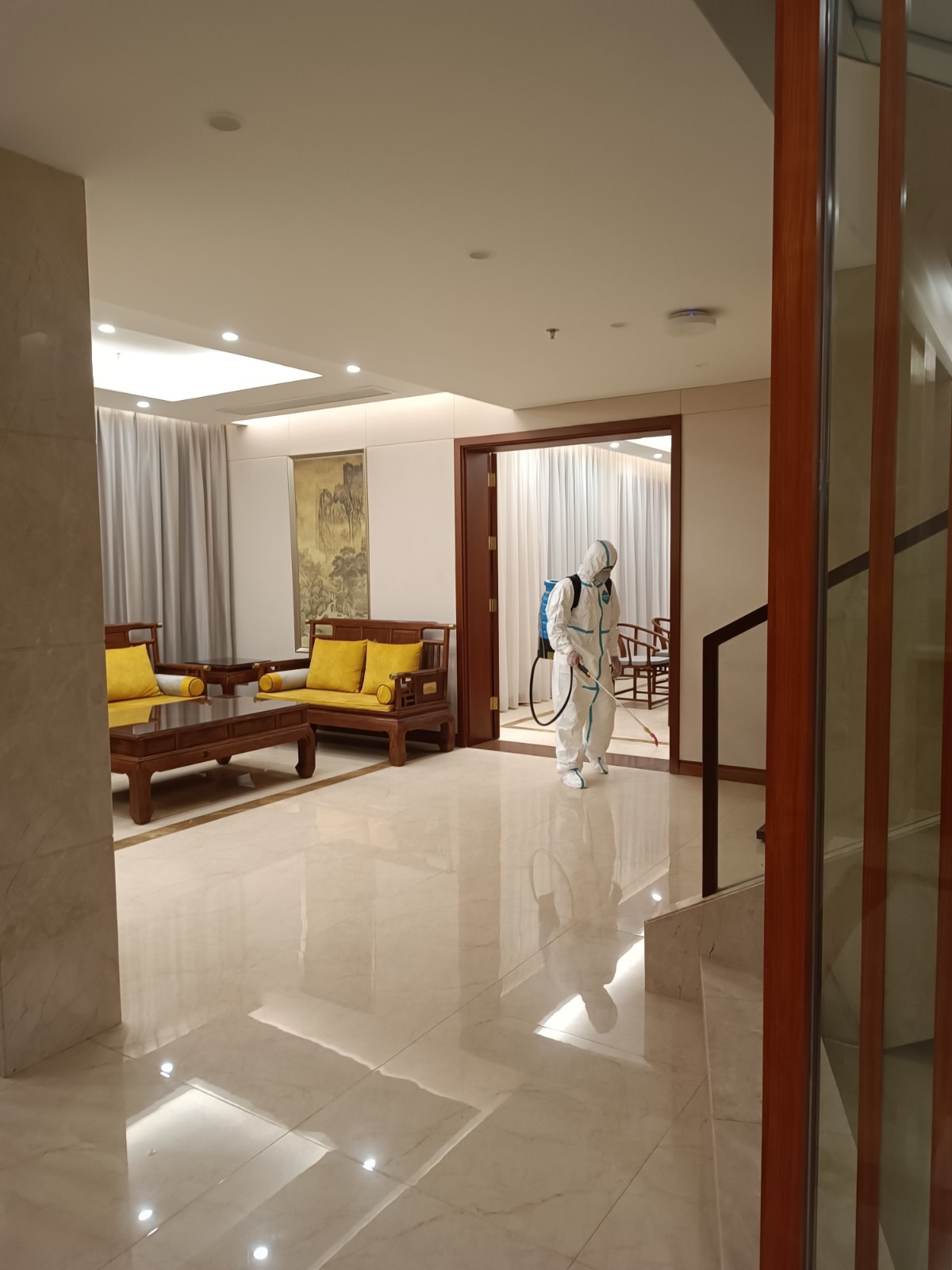 配合相關(guān)政委部門工作協(xié)調(diào),我司立即派遣消毒工作人員到異常相關(guān)活動地方按防疫要求進(jìn)行全面消毒處理,